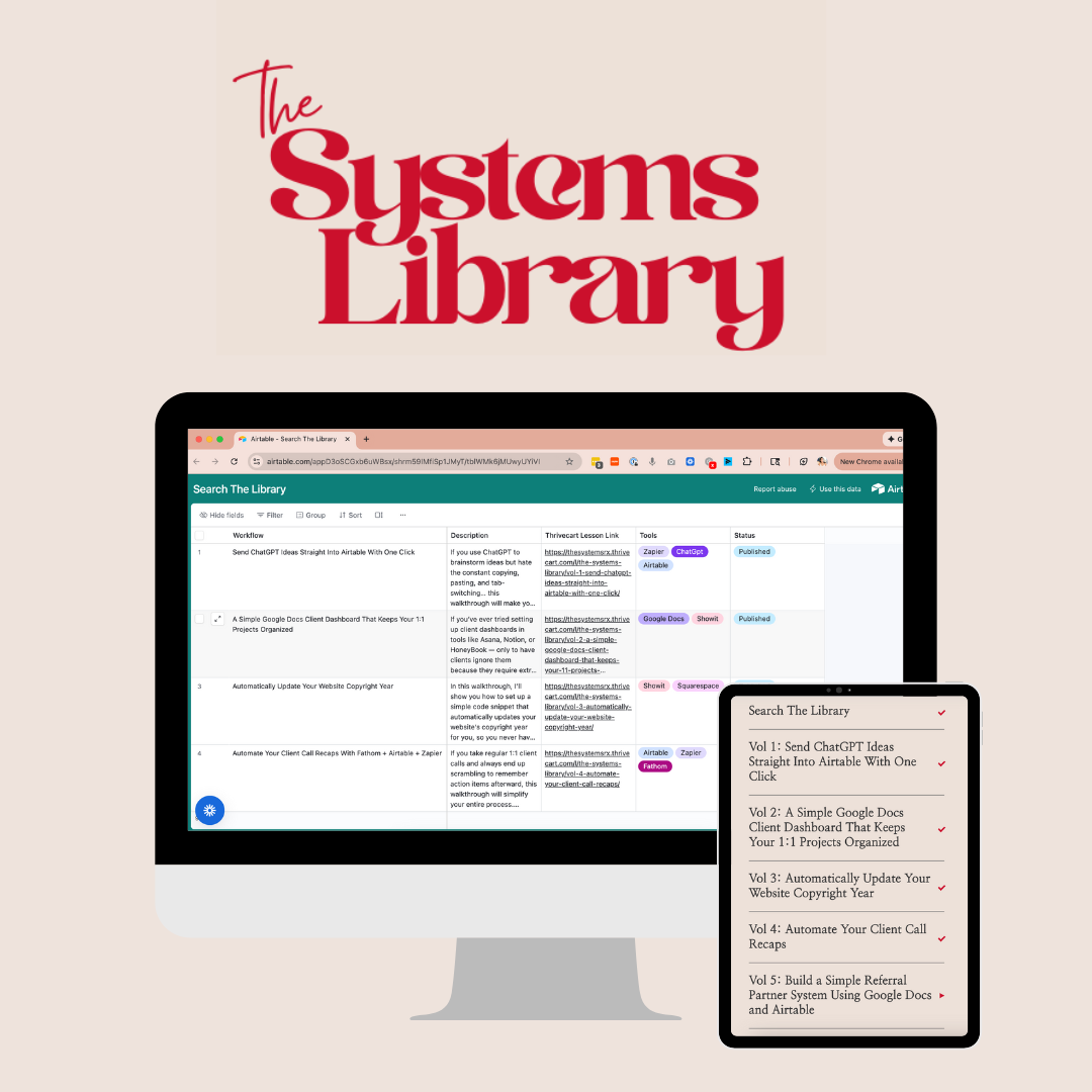 The Systems Library is a weekly systems and workflow membership for business owners who want backend wins without the overwhelm. Try it free for 30 days and get access to the workflow library plus one new workflow each week to save time, protect revenue, and make your business run smoother.