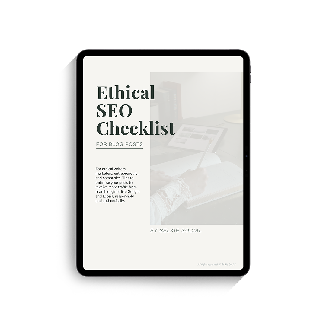 A straightforward checklist to optimise your blog posts to receive more traffic from search engines, responsibly and authentically, without sacrificing your personality and the authenticity of your writing. Inside this freebie, you'll also find ethical, ‘white hat’ SEO tips to refer back to when writing and publishing your blog posts.