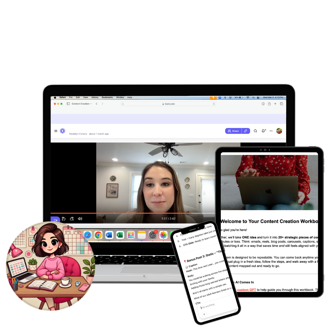 Turn ONE Idea Into 20+ Pieces—of Content in Just 20 Minutes or Less! This Content Kit gives you a repeatable system (and your own custom GPT!) to create emails, posts, and more, without burning out or sounding robotic. If content creation feels overwhelming, inconsistent, or like it takes way too long, this is for you!